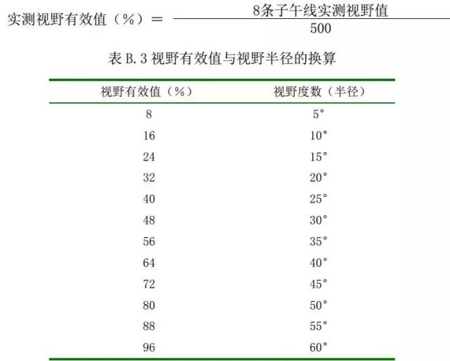 周边视野缩小,鉴定以实测得八条子午线视野值的总和计算平均值,即有效视野值。